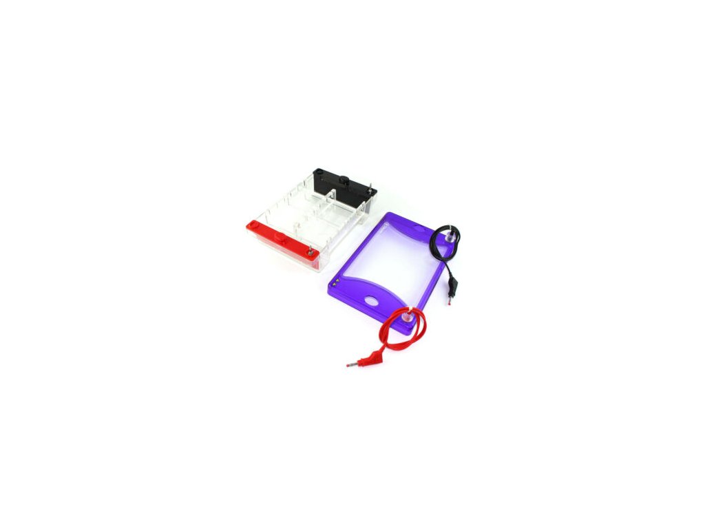 4 Student Agarose Electrophoresis System | Cleaver Scientific poskytuje výkonné riešenie pre výučbu a praktické cvičenia z molekulárnej biológie. Disponuje UV-priehľadnými gélovými táckami s rozmermi 7 × 7 cm, dvoma hrebeňmi a dvoma „casting dams“ pre každý gel, čím umožňuje jednoduché odlievanie a manipuláciu s gelmi. Systém je dodávaný s flexibilnými CE-kompatibilnými káblami, ktoré zaisťujú bezpečné elektrické oddelenie a ochranu pre používateľov, a uzavretým bezpečnostným vekom, ktoré minimalizuje riziko kontaktu s bufferom a elektródami.