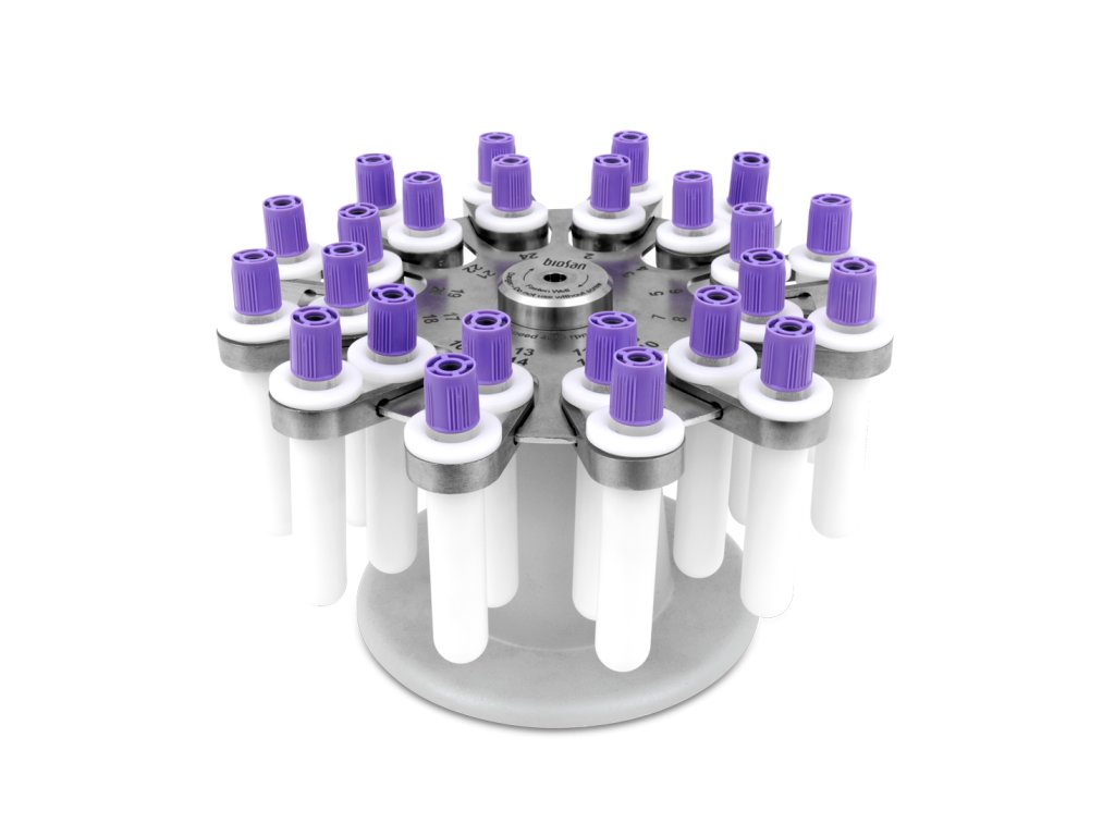 Adaptérová sada BN-13/100-24 je voliteľné príslušenstvo pre rotory R-24/10 a Ri-24/10, ktoré rozširuje možnosti ich využitia. Obsahuje 24 adaptérov, navrhnutých pre bezpečné a stabilné uchytenie vacutainerov s objemom 4–8 ml a rozmerom 13×100 mm.