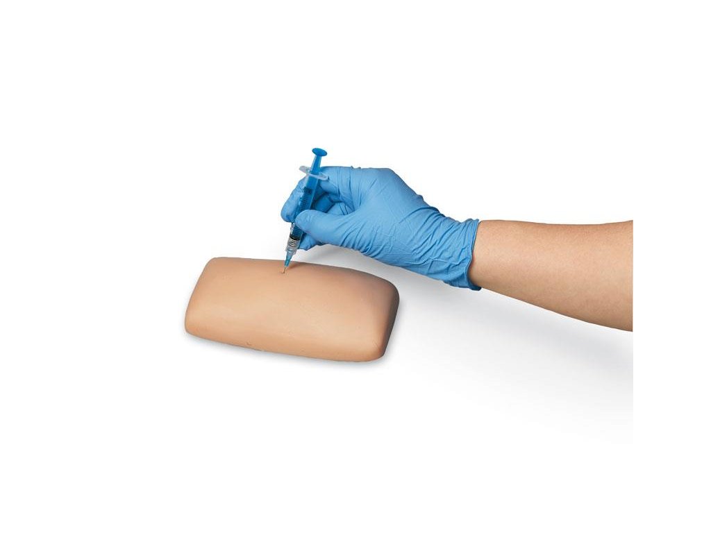 Rozmery modelu sú 17 × 9,5 × 4 cm, hmotnosť približne 0,4 kg. Vďaka realistickému pocitu pri vpichu poskytuje ideálne podmienky na nácvik techniky, správneho sklonu ihly a kontroly hĺbky vpichu.