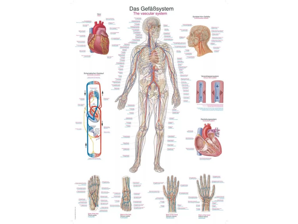 Anatomický plagát „Cievny systém“ | Arteriálny a venózny systém tela | Kardiovaskulárna anatómia | Erler Zimmer