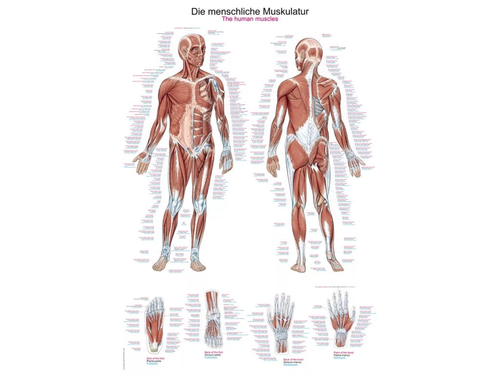 Anatomický plagát „Ľudské svaly“ – AL500 od Erler Zimmer poskytuje komplexné zobrazenie ľudskej svalovej sústavy (predný a zadný pohľad). Ideálna učebná pomôcka pre fyzioterapiu, ortopédiu a anatómia svalov. Zahrnutá nomenklatúra v nemeckom, latinskom a anglickom jazyku.