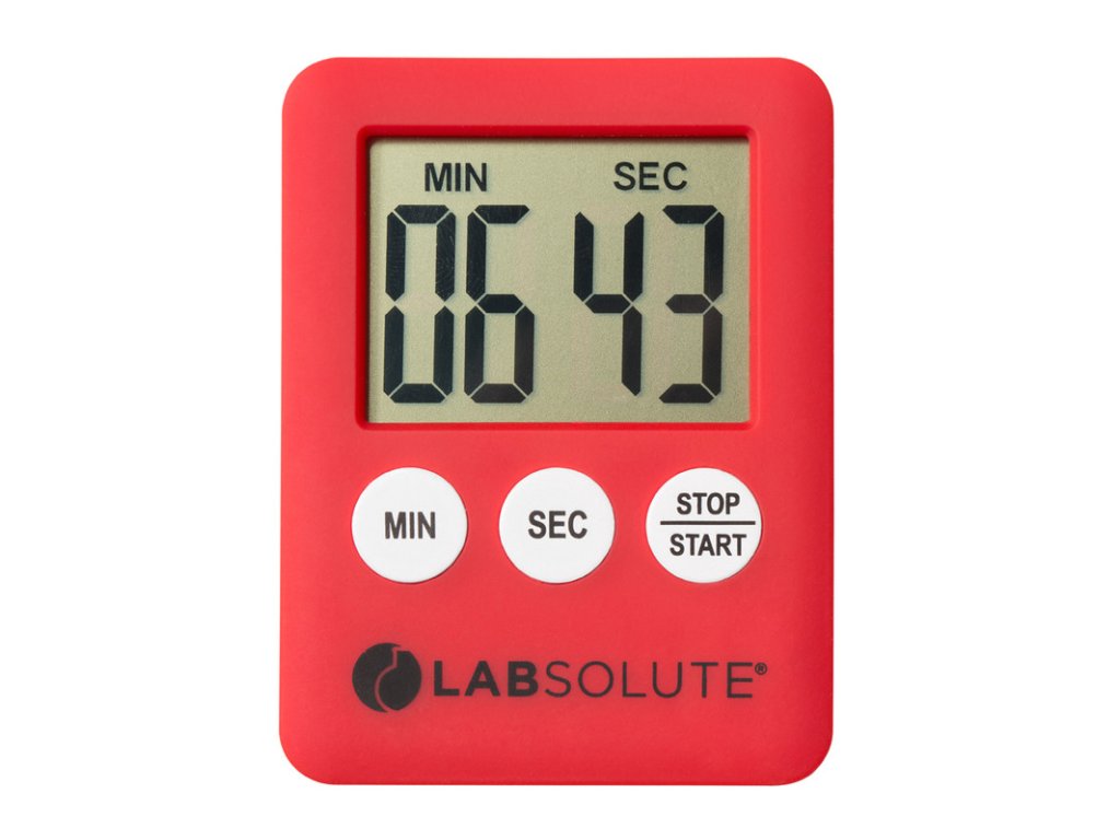 Basic timer – jednoduchý laboratórny časovač s funkciou odpočítavania, magnetickým úchytom a úsporným vypínačom. Značka: Labsolute.