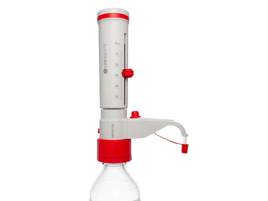 LABSOLUTE® bottle top dispenser je spoľahlivý analógový dávkovací nadstavec určený na presné dávkovanie kvapalín priamo z fliaš. Vďaka recirkulačnému ventilu minimalizuje straty pri odvzdušňovaní a zaisťuje rovnomerný chod bez bublín. Ideálny pre rutinné aj náročné laboratórne aplikácie.