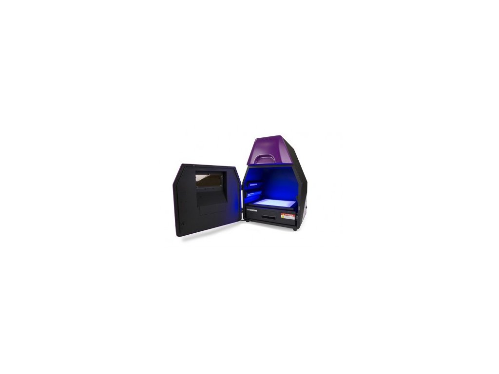 Rozmery prístroja sú 410 × 405 × 570 mm, hmotnosť 25 kg. Ovládanie je cez USB – PC (Windows 7, 8, 10), napájanie 110–230 V, prístroj má LED displej. Bezpečnostný interlock systém odpojí UV pri otvorení dvierok. Certifikácia CE a FCC.
