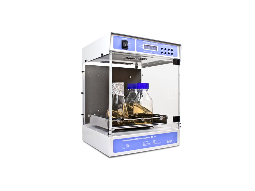 ES-20 – inkubátor s trepačkou je kompaktný stolový prístroj určený na miešanie biologických kvapalín a na ich inkubáciu a kultiváciu pri nastaviteľných podmienkach. Ponúka spoľahlivú reguláciu teploty, rovnomerné rozloženie tepla a dlhodobú nepretržitú prevádzku až 30 dní.