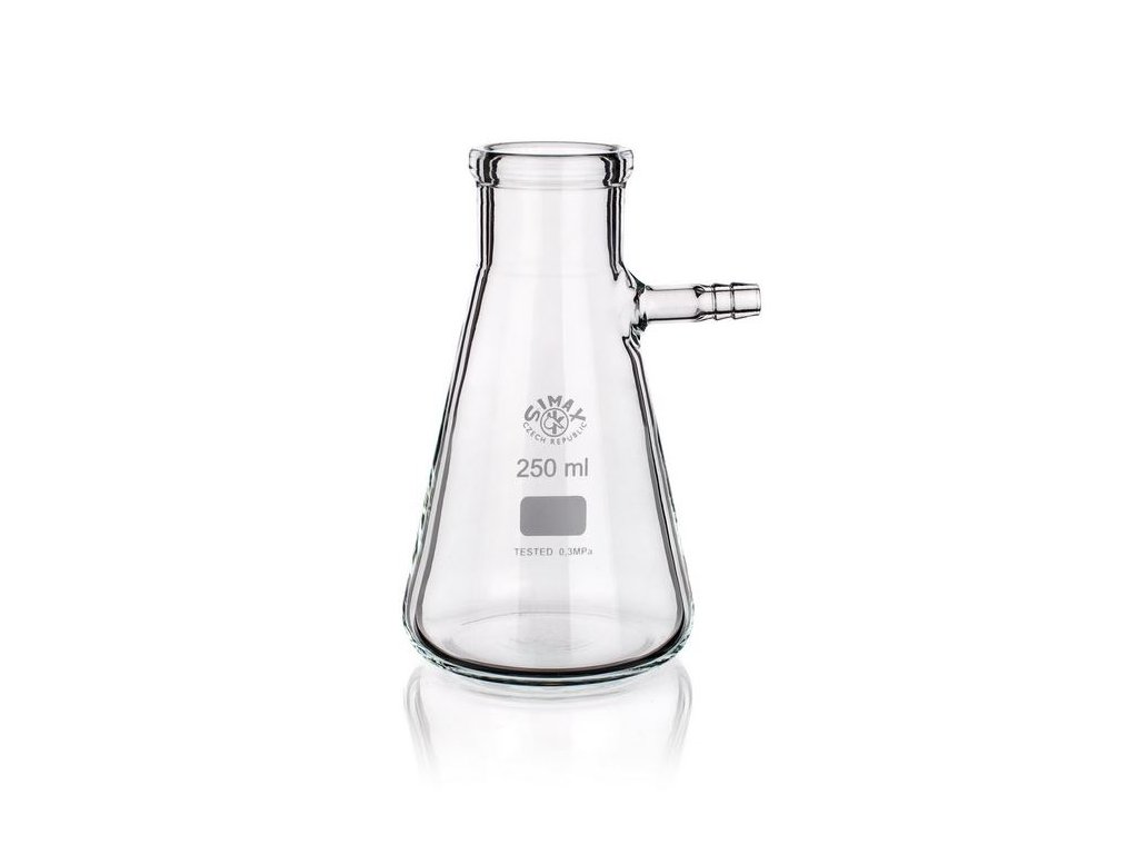 Fľaša odsávacia so sklenenou olivkou; SIMAX ; Extrakčná fľaša so sklenenou olivou; je univerzálna laboratórna pomôcka vyrobená z borosilikátového skla značky , vhodná na rôzne aplikácie vďaka svojej odolnosti.
