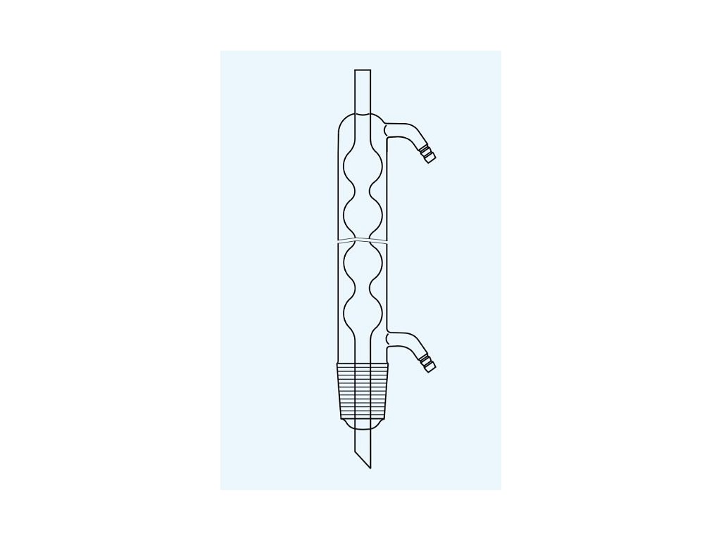 Guľôčkový chladič pre extraktory 70 ml, 200 mm | TECHNOSKLO je laboratórny chladič určený na použitie v Soxhletových extrakčných zostavách a iných systémoch, kde je potrebné spoľahlivé a rovnomerné chladenie pár.