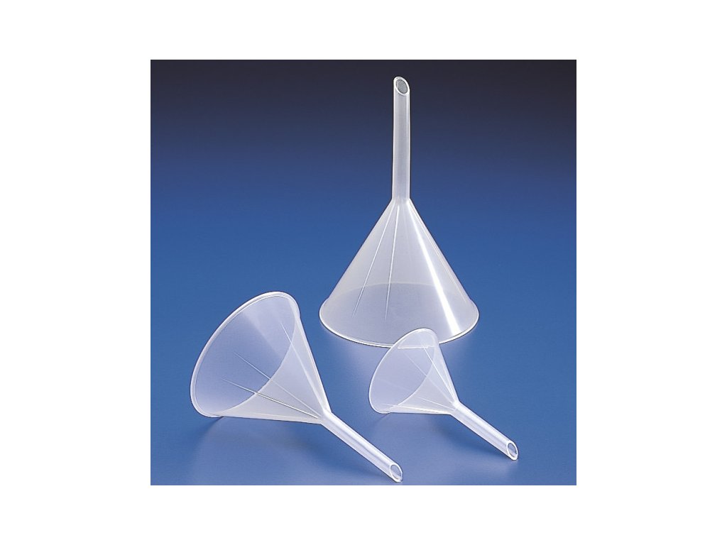 Lievik na analytickú chémiu z PP plastu – 60° uhol, rebrovaný, autoklávovateľný – Karell Labware