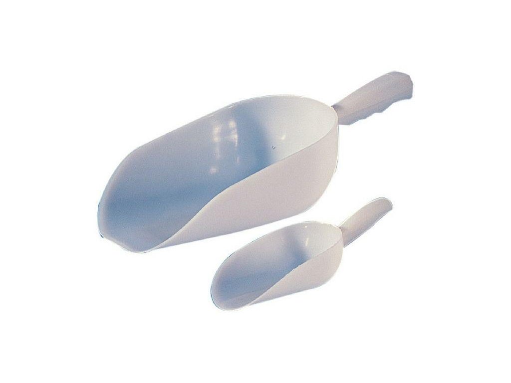 Lopatka z HDPE plastu, na sypké a pevné vzorky, so zaobleným dnom, chemicky odolná, vhodná pre potraviny aj laboratóriá – Lamaplast.