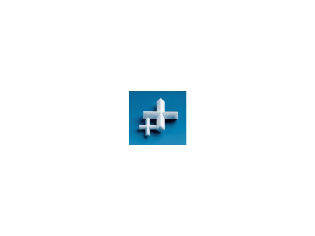 Magnetické miešadlo, krížové, PTFE je vysoko odolné miešadielko určené na účinné premiešavanie kvapalín v laboratórnych nádobách, ako sú kadičky, Erlenmeyerove banky či reakčné fľaše. Vďaka svojmu krížovému tvaru zabezpečuje stabilné a rovnomerné miešanie aj pri vyšších otáčkach. Povrch z chemicky inertného PTFE (polytetrafluóretylénu) zaručuje vysokú chemickú odolnosť, dlhú životnosť a kompatibilitu s väčšinou laboratórnych chemikálií. Magnetické jadro umožňuje hladké otáčanie pomocou magnetického miešadla. Ideálne pre každodenné laboratórne použitie v chemických, biologických aj analytických aplikáciách.