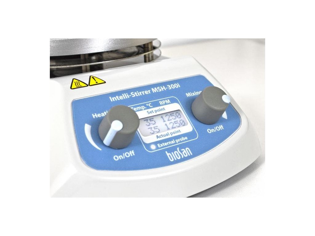 Magnetické miešadlo s ohrevom Intelli-Stirrer MSH-300i s digitálnym ovládaním rýchlosti a teploty umožňuje miešanie až 20 litrov vzorky. Vďaka externému teplotnému senzoru poskytuje presnú kontrolu teploty priamo v miešanej kvapaline.