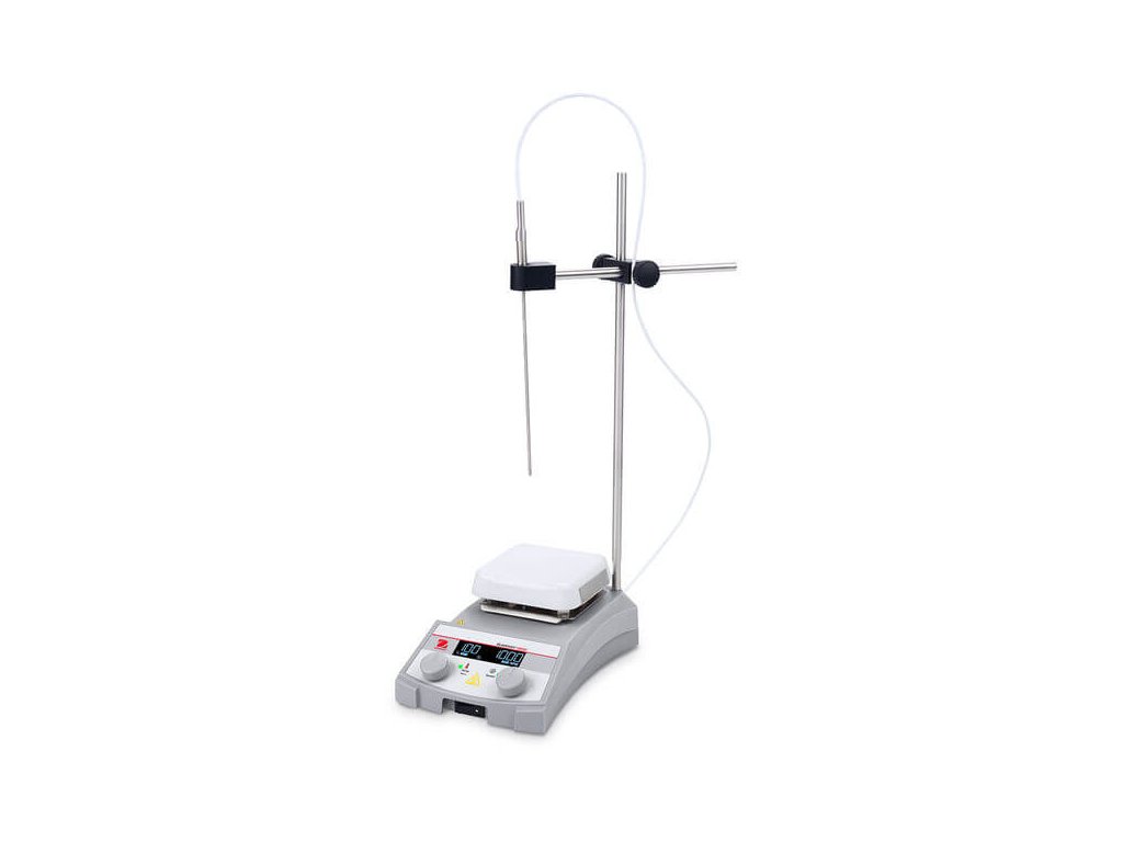 Digitálne magnetické miešadlo s ohrevom OHAUS e‑G31HS07C zo série Guardian 3000 kombinuje digitálne ovládanie s backlit LCD displejom, ohrev až do 500 °C, miešanie v rozsahu 80–1600 ot./min. na keramickej doske 7 × 7 in a množstvo bezpečnostných prvkov, čo ho robí ideálnym pre laboratóriá s objemom do 15 litrov.