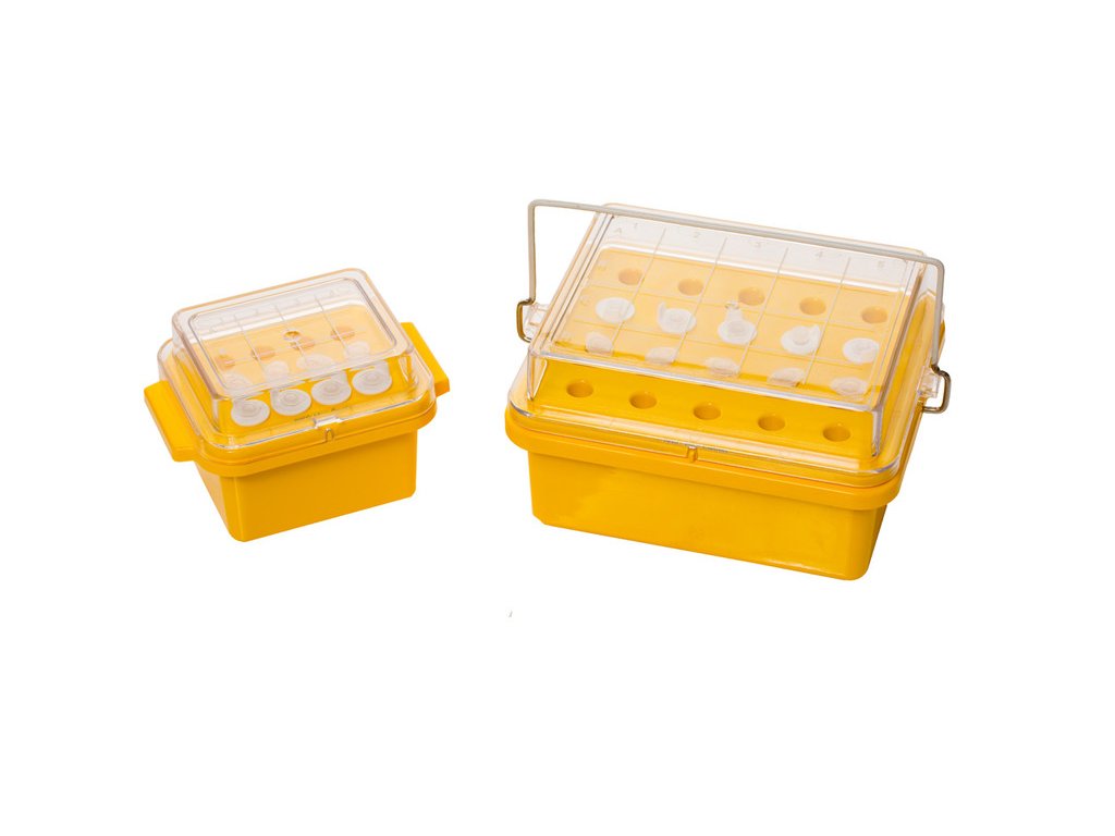 Mini chladici box LABSOLUTE -20 °C z odolného PC pre 12 mikro alebo kryo skúmaviek s objemom 0,5–1,5 ml. Udržiava teplotu -20 °C minimálne 60 minút.