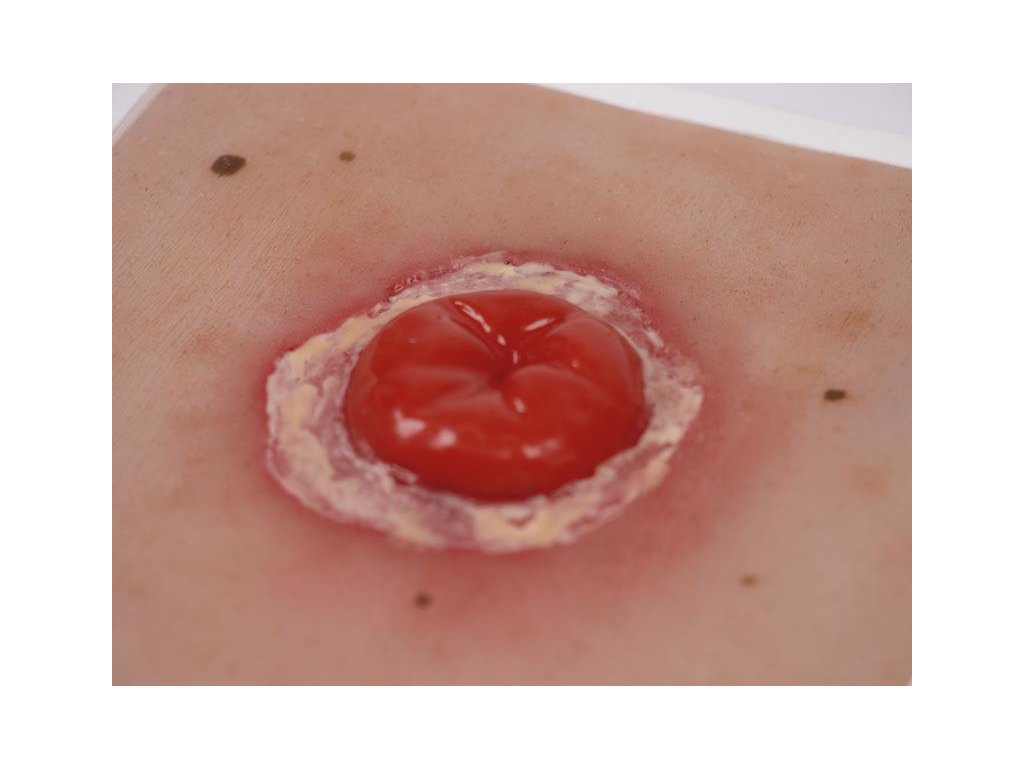 Model Wound Moulage Colostoma PW022 so zápalom od ERLER ZIMMER predstavuje výučbovú pomôcku pre starostlivosť o stómiu v prípade zápalového stavu. Model simuluje: