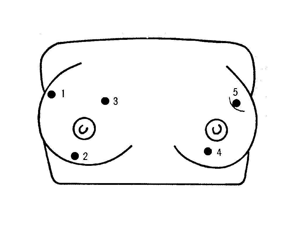 Model obsahuje päť hrčiek, pričom jedna z nich vykazuje vtiahnutie kože, čo simulujte príznak, ktorý môže indikovať závažná ochorenia. Vďaka možnosti pripevnenia modelu okolo tela (na prsník) je veľmi vhodný aj pre praktické demonštrácie a skupinovú výučbu.