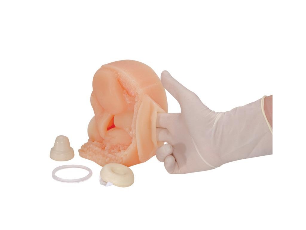 s rezanou sekciou, ktorá umožňuje vizuálne overiť správnosť umiestnenia. Model je ideálny pre školy, kurzy sexuálnej výchovy, zdravotnícky personál aj osvety. Súčasťou balenia je taška a lubrikant (antikoncepčné pomôcky nie sú súčasťou).
