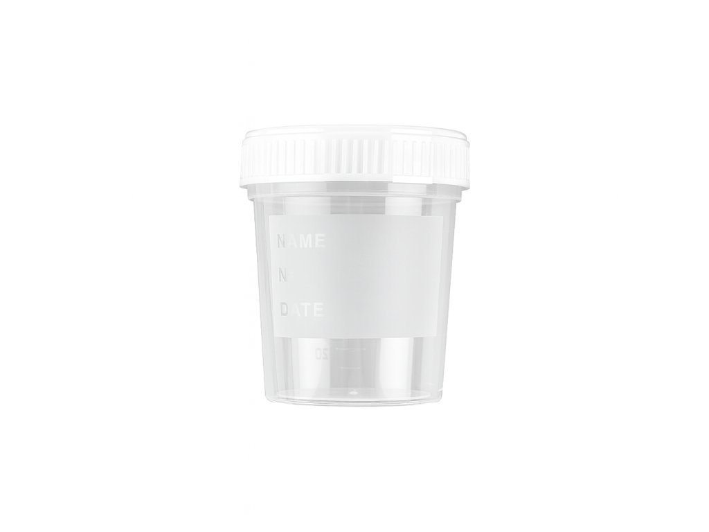 Odberová nádoba na moč 120 ml od FL Medical (kód 25033) je určená na hygienický odber moču a iných biologických vzoriek. Vyrobená z odolného polypropylénu a doplnená o biely skrutkovací uzáver z polyetylénu. Na povrchu sa nachádza matná plocha na popis, ktorá umožňuje jednoduché a trvalé označenie vzorky.