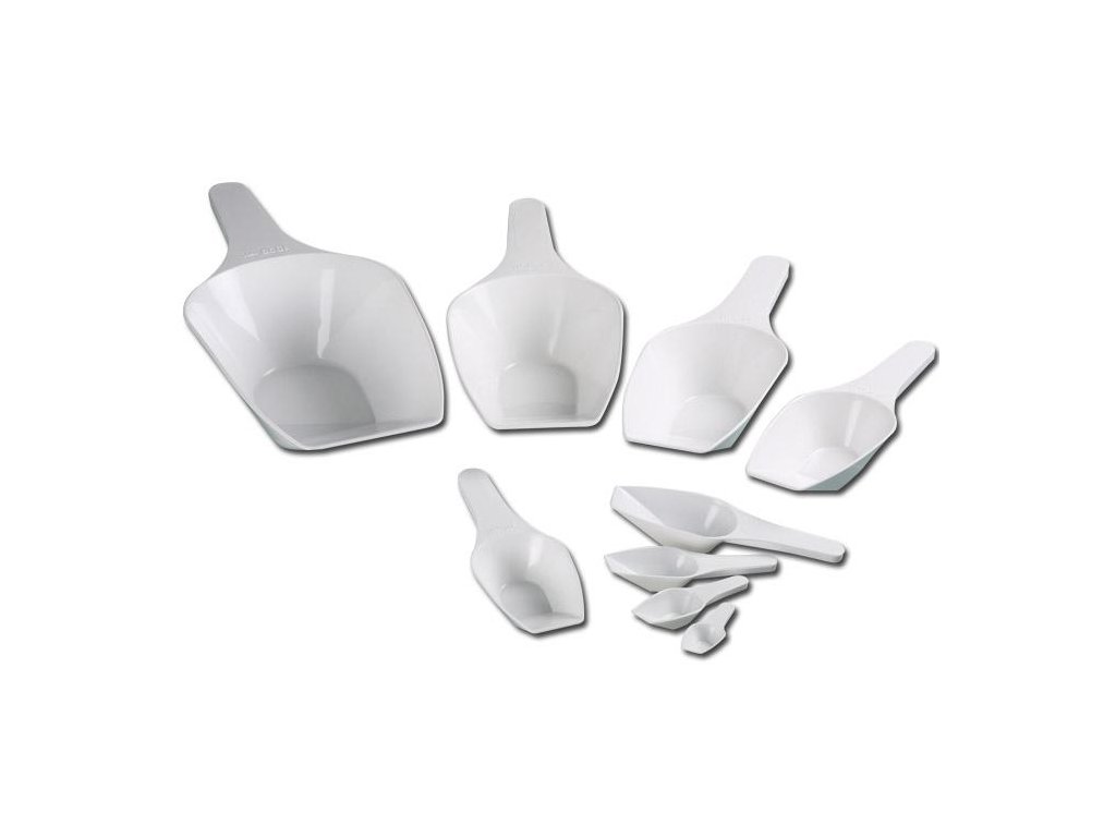 Odmerná lopatka z PP plastu, s plochým dnom a skosenými hranami, chemicky odolná, ľahko čistiteľná, ideálna pre laboratórne vzorkovanie – Kartell Labware.