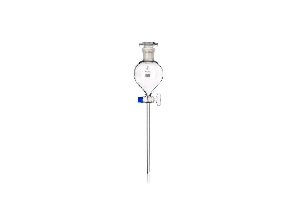 Okrúhly oddeľovací lieviky so sklenenou zátkou, NZ sklenený kohút; SIMAX – SIMAX; Okrúhly oddeľovací lieviky so sklenenou zátkou, NZ 19/26, sklenený kohút; zo skla .