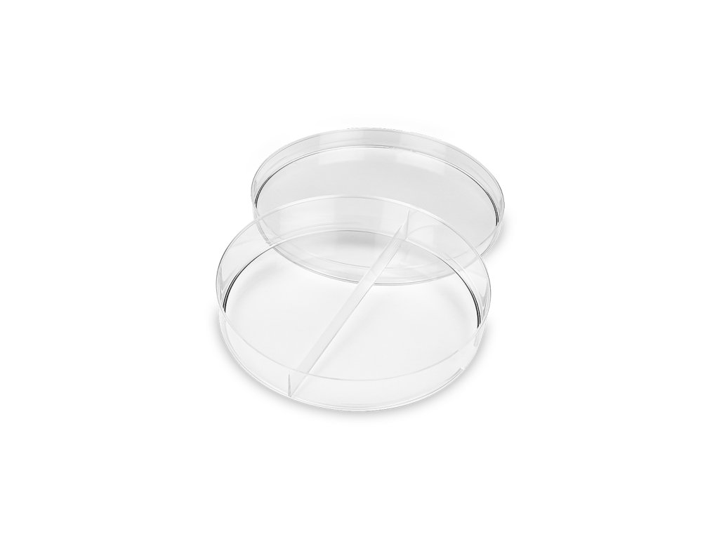 Petriho miska s priemerom Ø 90 mm a výškou 16,2 mm, rozdelená na 2 sektory s trojitým ventilačným systémom.Sterilná. Balenie 20 ks – FL Medical.