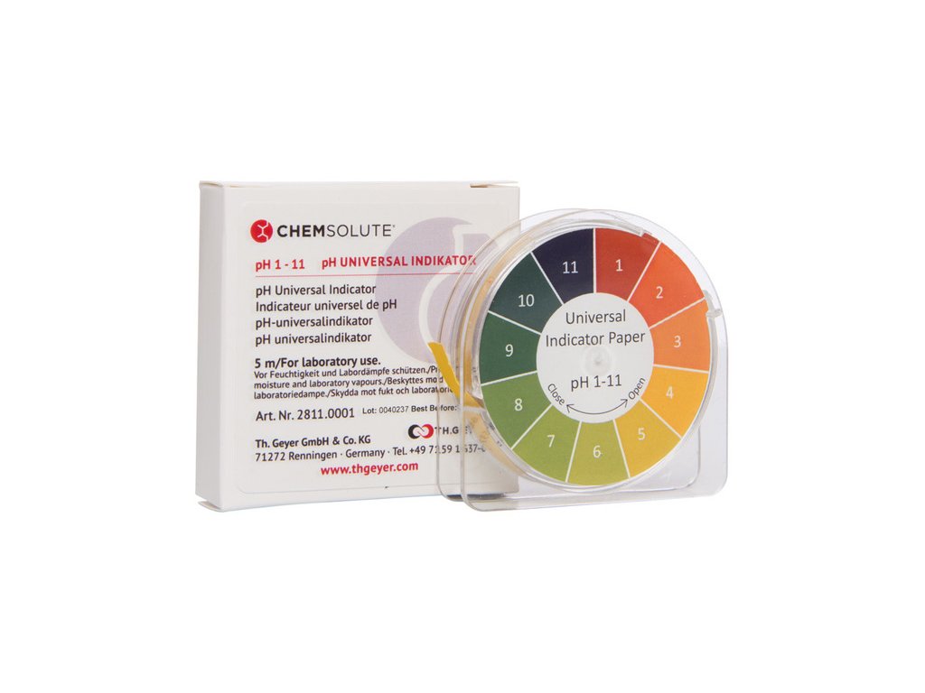 pH papierik CHEMSOLUTE® Universal je cenovo výhodné a spoľahlivé riešenie na rýchle stanovenie pH hodnôt vo vodných roztokoch. Tento indikátorový papier je vyrobený z kvalitného filtračného papiera impregnovaného indikátorovým roztokom, vďaka čomu poskytuje presné a konzistentné výsledky v krokoch po 1,0 pH.