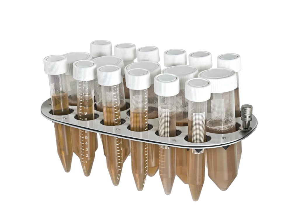 Kapacita: 5 skúmaviek (20–30 mm, do 50 ml) + 12 skúmaviek (10–16 mm, 1.5–15 ml)