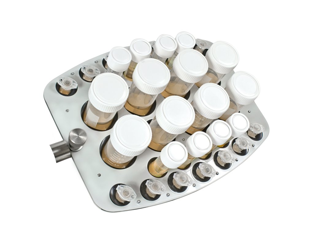 PRS-8/22 platforma umožňuje kombinované použitie pre 8 skúmaviek s priemerom 20–30 mm (do 50 ml) a 22 skúmaviek s priemerom 10–16 mm (1.5–15 ml). Flexibilné riešenie s voliteľným typom platformy pre univerzálne laboratórne aplikácie.
