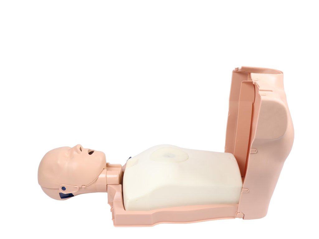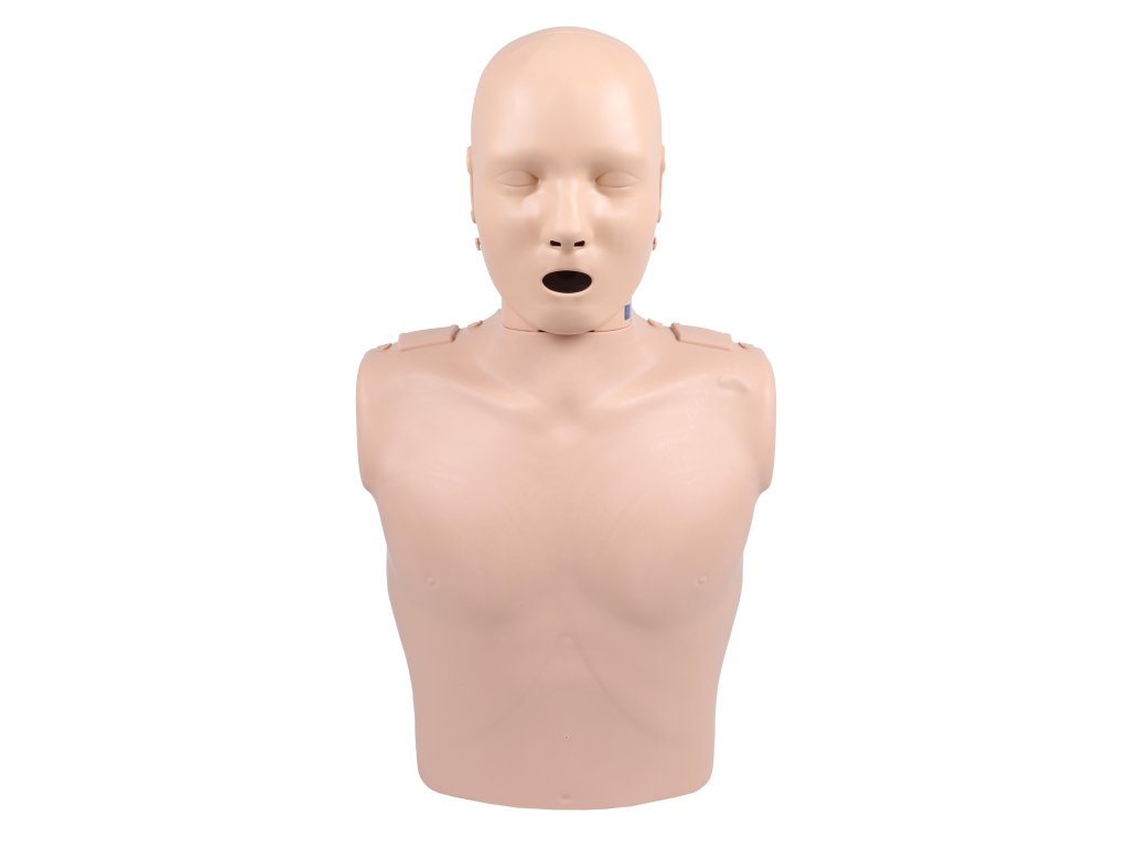 Torzo s indikáciou rýchlosti a hĺbky stlačenia hrudníka, funkčnými ústami, nosom a prieduškami, hygienickým systémom a 10-mi výmennými dýchacími krytmi – ideálne pre výučbu CPR.