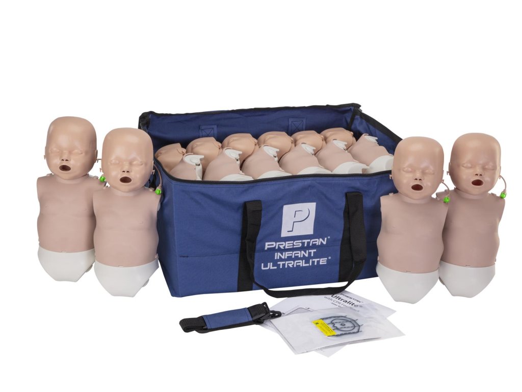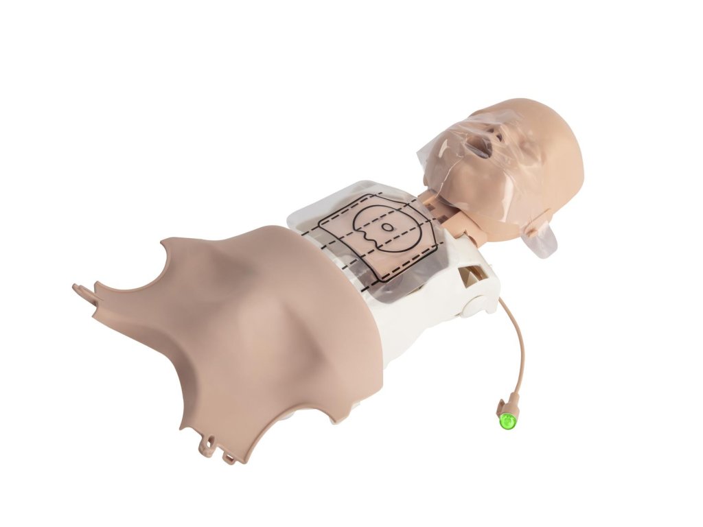 Detský manekín Resusci Baby QCPR s dýchacou hlavou, kompatibilný s aplikáciami a pripojením cez Bluetooth – ideálny na realistický tréning resuscitácie bábätka.