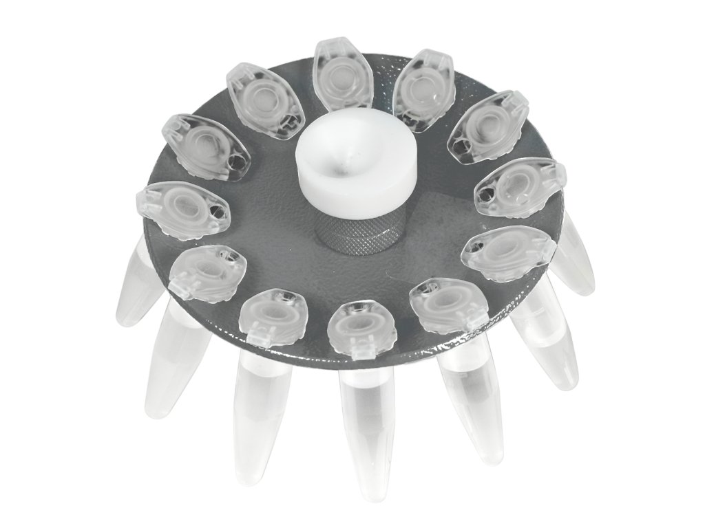Rotor R-1.5M je určený pre 12 × 1,5 ml a 12 × 2 ml mikroskúmaviek. Poskytuje spoľahlivú fixáciu skúmaviek počas centrifugácie a je ideálnym doplnkom pre minicentrifúgy a vortexy.