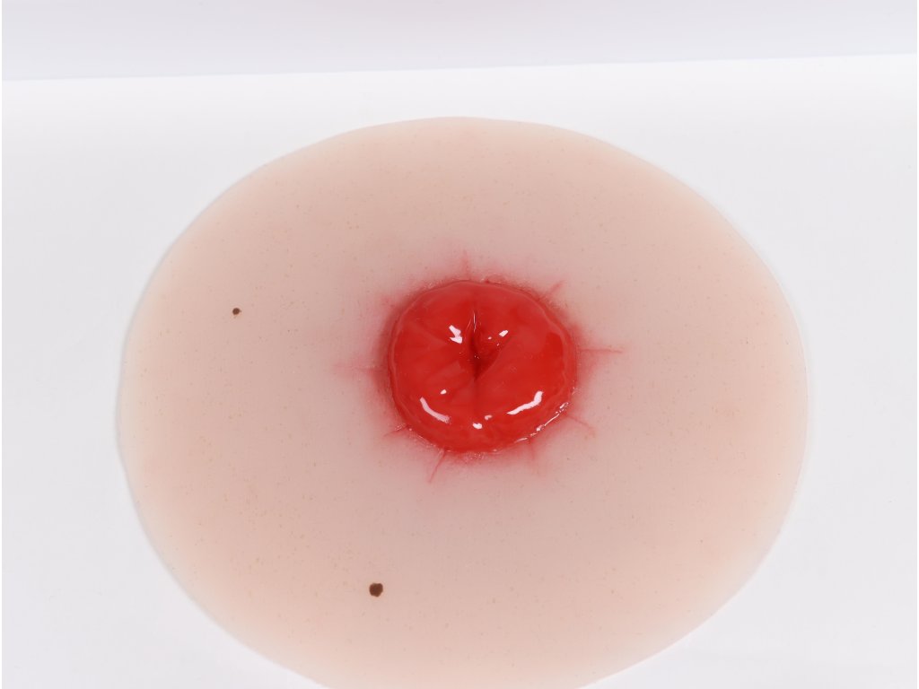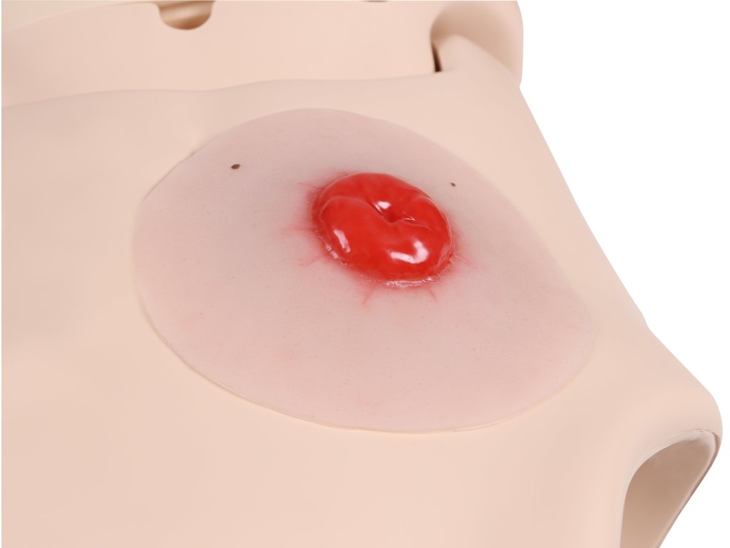 Samolepiaci model PW021P s kolostómiou – ideálny na určenie veľkosti stomie, čistenie kože a nalepenie stomického vrecka.