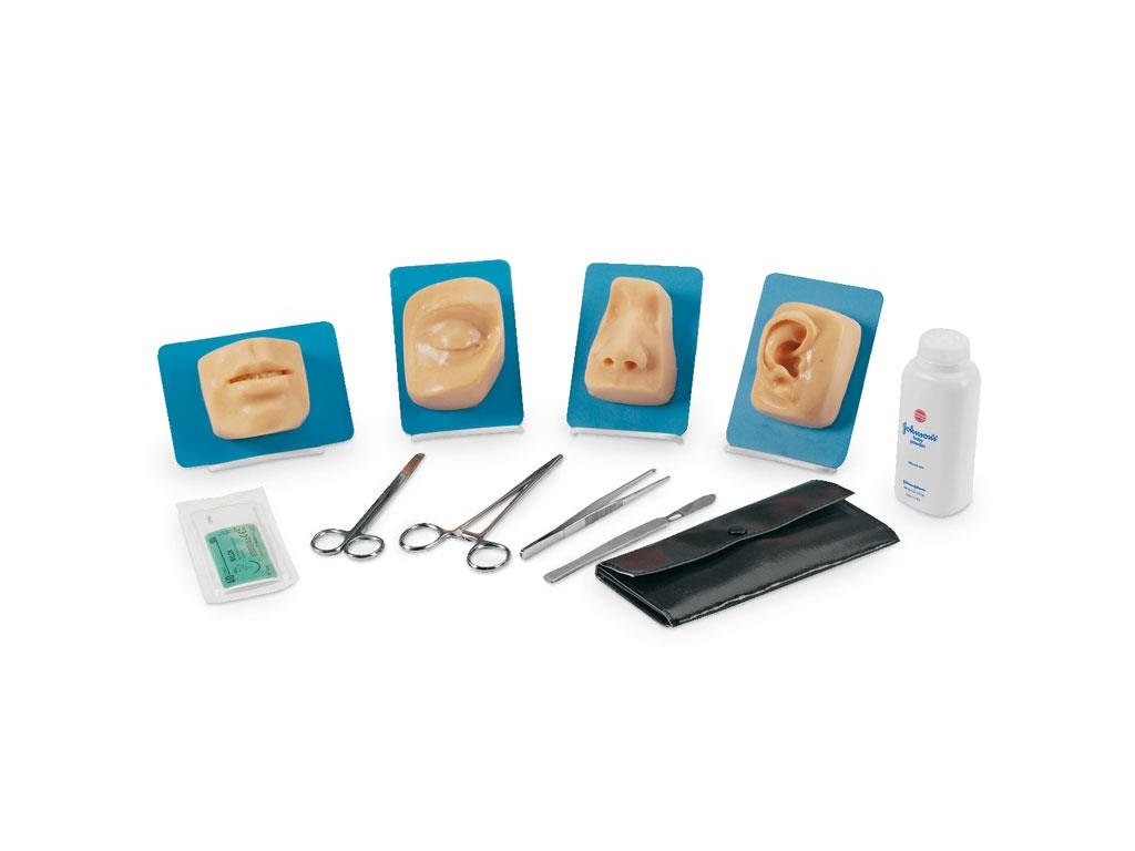 Simulátor R11001 obsahuje realismom verné diely na tvár (ústa, nos, oči, ucho) na nácvik šitia rán a poranení tváre.
