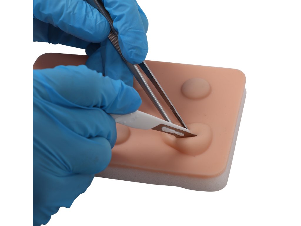 Simulátor pad na cystické útvary a abscesy 8030 od ERLER ZIMMER je tréningová pomôcka určená pre zdravotníckych pracovníkov a študentov, ktorí sa chcú zdokonaliť v ošetrení kožných lézií. Pad umožňuje cvičiť také postupy ako: