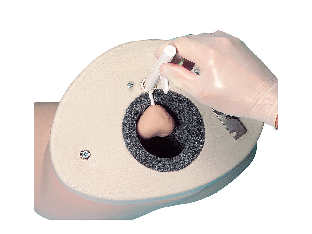 Simulátor vyšetrenia prostaty R10031 s 4 vymeniteľnými prostatickými modulmi – normálne, nádor v počiatočnom štádiu, väčší nádor, úplne postihnuté žľazovo-tkanivo. Realistická výučná pomôcka pre klinickú diagnostiku.