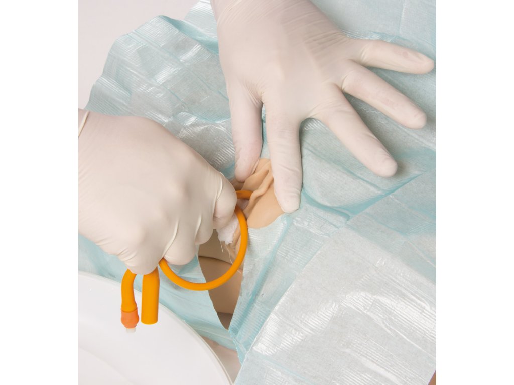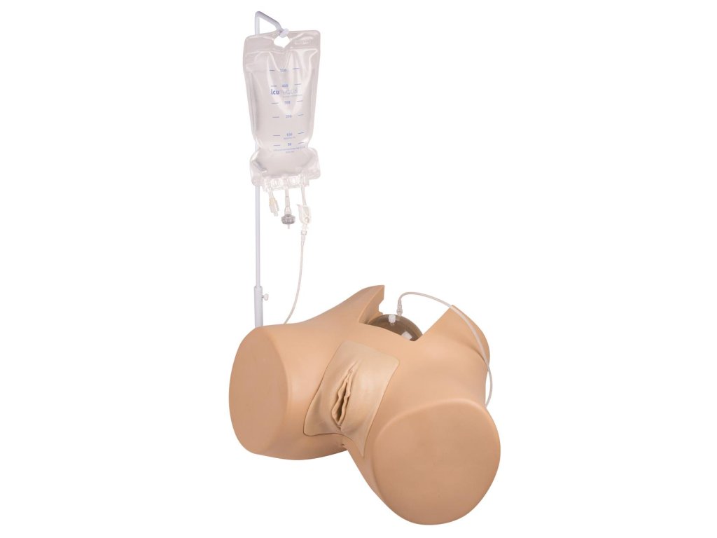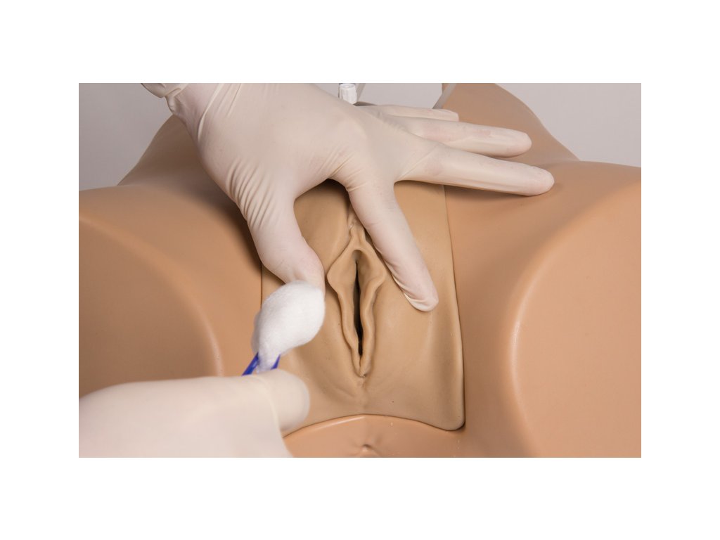 precvičiť prácu so ženským genitálnym insertom, kde sú labia flexibilné a je nutné ich roztvoriť na nájdenie uretrálneho otvoru, ktorý nie je hneď zjavný a nachádza sa blízko vaginálneho vchodu – tým sa simuluje možnosť neúspešnej katetrizácie,