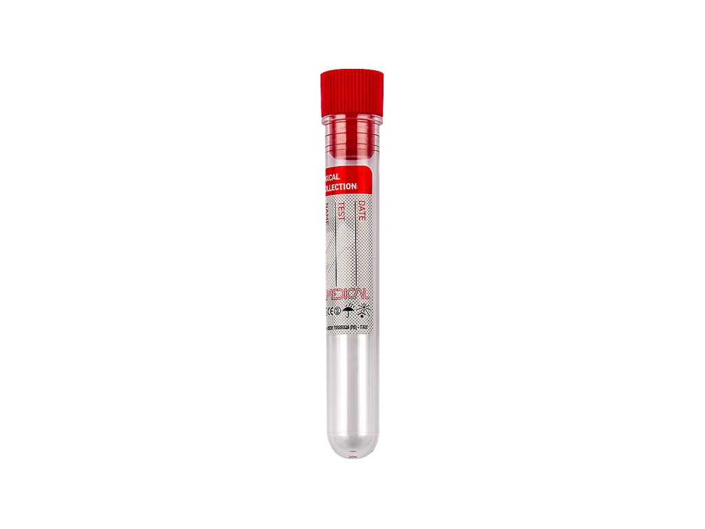Sterilná skúmavka z polypropylénu s objemom 10 ml, rozmermi 16×100 mm, cylindrická, vybavená červeným uzáverom. Dodávaná v bulk balení, cena uvedená za 1 kus I FL Medical.
