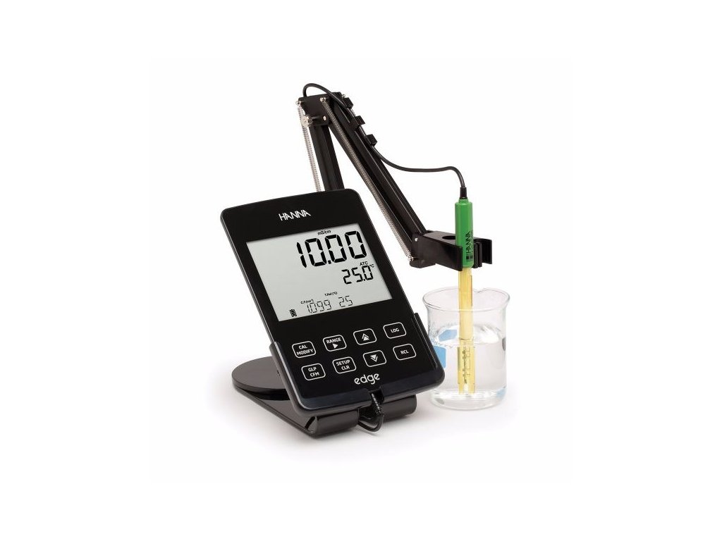 Obsah balenia: multimerač EDGE®, sonda konduktivity HI763100, 3 x 20 ml kalibračných roztokov 1413 µS/cm a 12880 µS/cm, laboratórny stojan s otočným ramenom, USB nabíjačka (PC, auto alebo 230 V adaptér), držiak na stenu, návod a kalibračný certifikát.