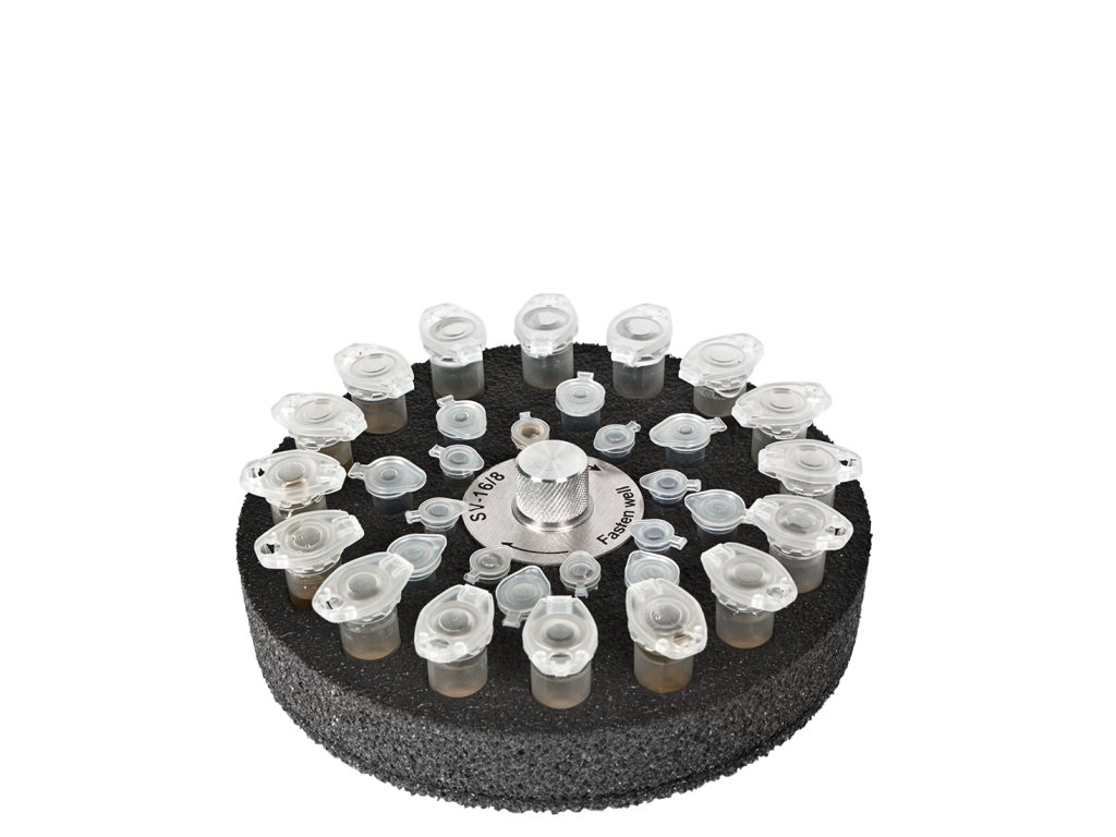 Platforma SV-16/8 je určená pre uchytenie mikroskúmaviek rôznych objemov a priemerov. Poskytuje stabilnú fixáciu pri práci a je vhodná na použitie v laboratórnych zariadeniach s maximálnou rýchlosťou otáčania do 3400 ot./min (pri 75 % objemu skúmavky).