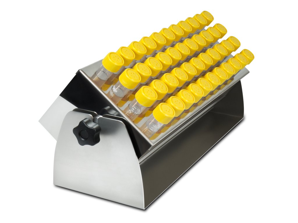 Vďaka nastaviteľnému uhlu sklonu je možné optimalizovať polohu skúmaviek podľa konkrétnej aplikácie. Stojan má kapacitu 44 skúmaviek s objemom 15 ml a priemerom otvoru 17 mm, čo zabezpečuje ich stabilné uchytenie.