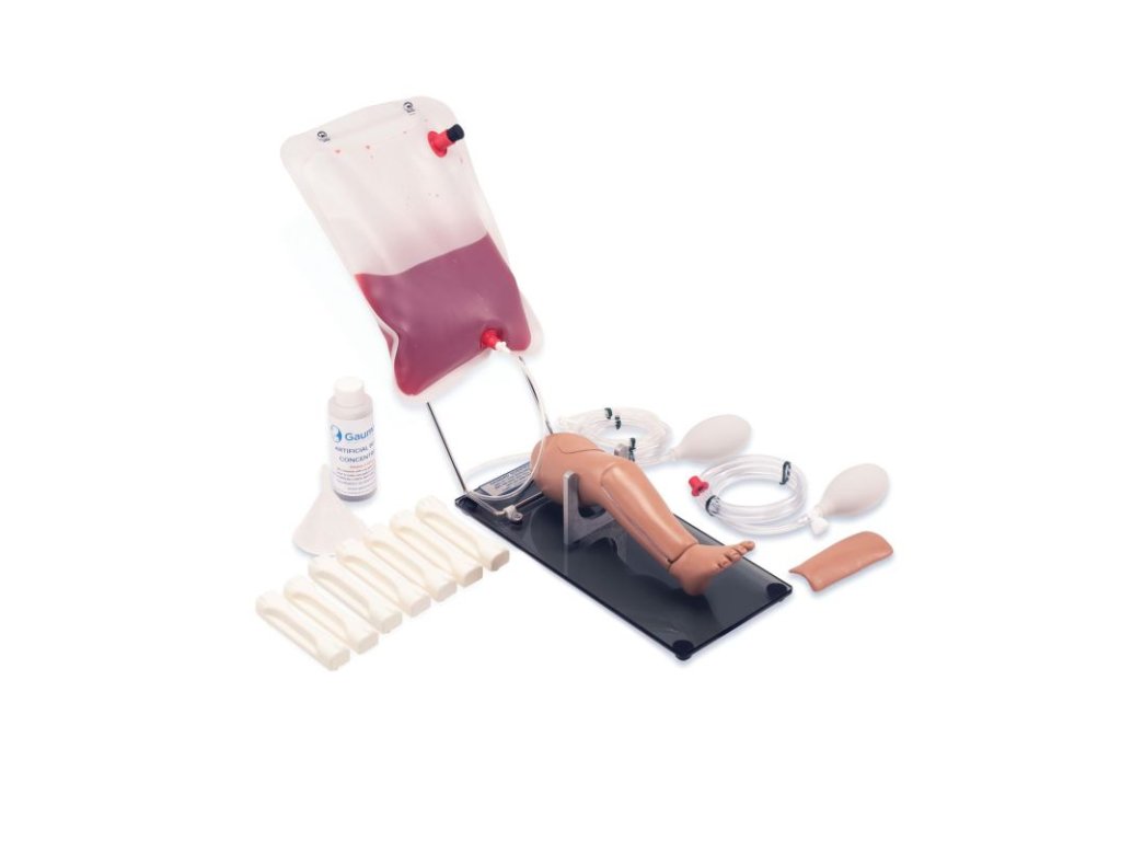 súčasťou modelu je femorálna žila/arteria a miesto pre intramuskulárnu injekciu;
