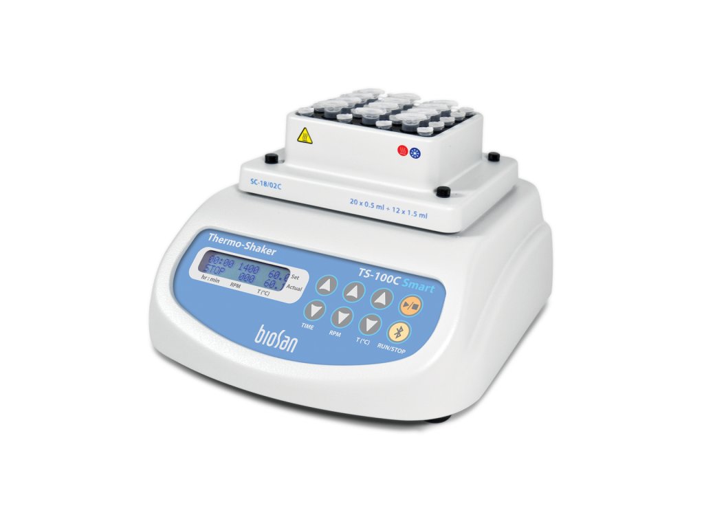 Termo-trepačka TS-100C Smart je pokročilé laboratórne zariadenie určené na intenzívne trepanie, ohrev aj chladenie vzoriek v mikroskúmavkách a PCR platniach. Oproti modelu TS-100C ponúka možnosť ovládania až 7 jednotiek z PC prostredníctvom Bluetooth®, vrátane tvorby profilov, vizualizácie grafov teploty a rýchlosti v čase a exportu údajov do Excel alebo CSV formátu.