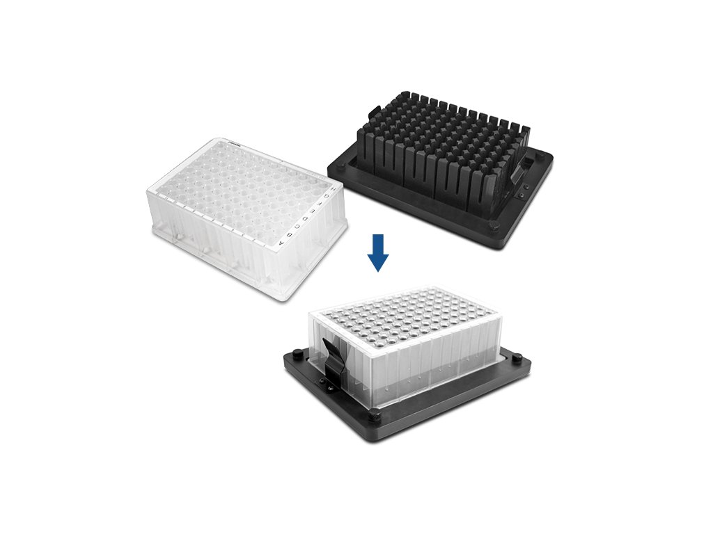 Zariadenie je kompatibilné s viacerými výmennými blokmi, ktoré podporujú najpoužívanejšie Deep Well platne, ako Eppendorf® 96/1000 μl, Sarstedt® Megablock 96/2200 μl, Porvair® 96/2000 μl alebo Axygen® 96/2200 μl. Na požiadanie je možné vyrobiť aj prispôsobený blok.