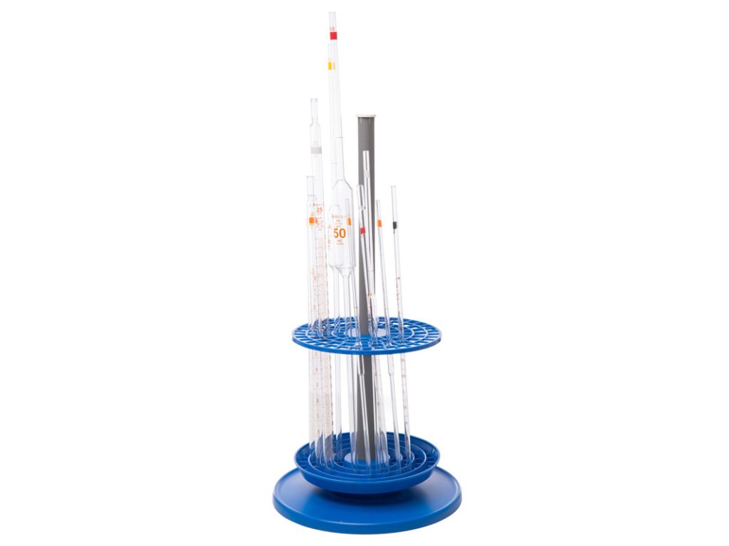 Vertikálny otočný stojan na pipety Labsolute s kapacitou až 94 pozícií rôznych veľkostí predstavuje ideálne riešenie pre bezpečné, prehľadné a hygienické uloženie objemových aj odmerných pipiet. Vyrobený z polypropylénu (PP), ponúka vysokú odolnosť voči chemikáliám a teplu, a je autoklávovateľný pri 121 °C, čo zaručuje jeho použiteľnosť aj v sterilných pracovných prostrediach.